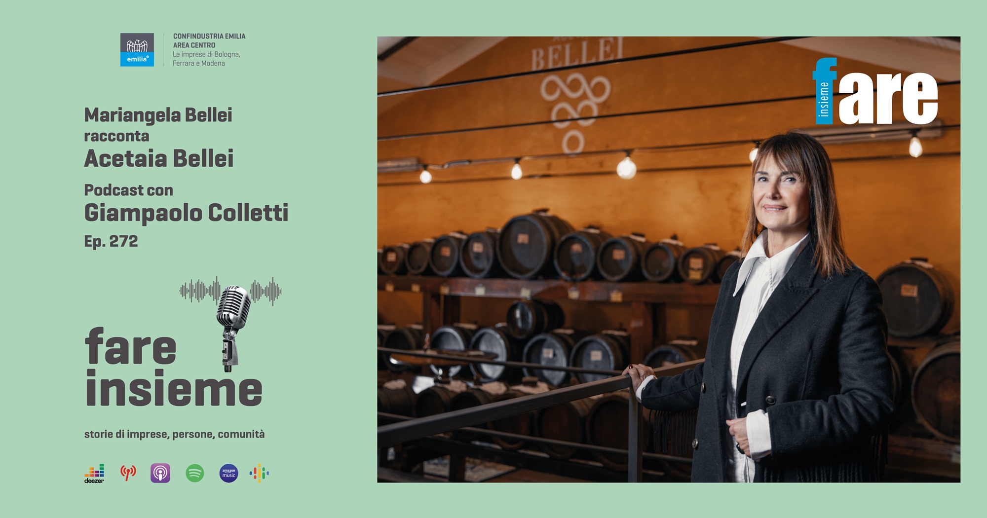 Acetaia Bellei was founded in the Modena area, specialising in the production of high-quality Modena Balsamic Vinegar. The Bellei family's tradition dates back to the 19th century, with the cultivation of vineyards and artisanal production. Today, the company continues to stand out for its dense, aged Balsamic Vinegar, which is appreciated both in Italy and abroad. Giampaolo Colletti interviews Mariangela Bellei, CEO of Acetaia Bellei, for FARE INSIEME