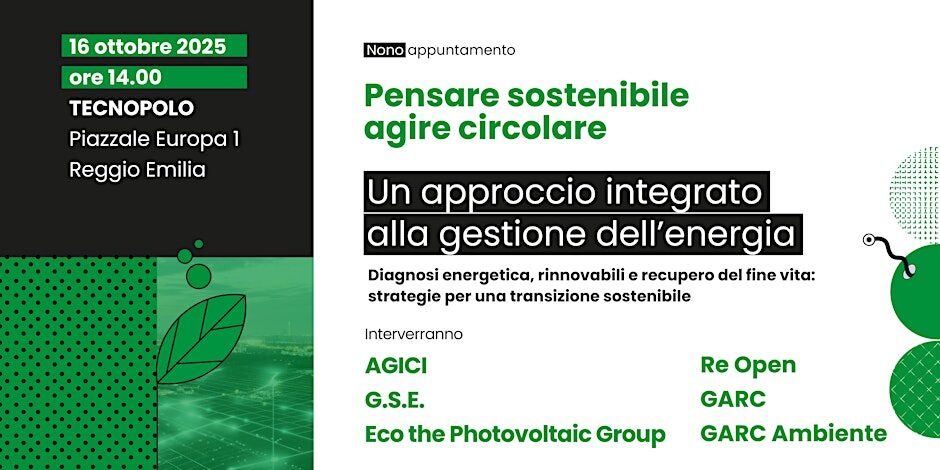 Giovedì 16 ottobre 2025 presso il Tecnopolo di Reggio Emilia, torna “Pensare Sostenibile, Agire Circolare”, il ciclo di incontri formativi promosso da Fondazione REI in collaborazione con Garc Ambiente S.p.A. SB.