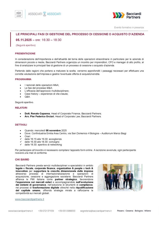 • Avv. Pier Federico Orciari, Head of Corporate Law, Bacciardi Partners.