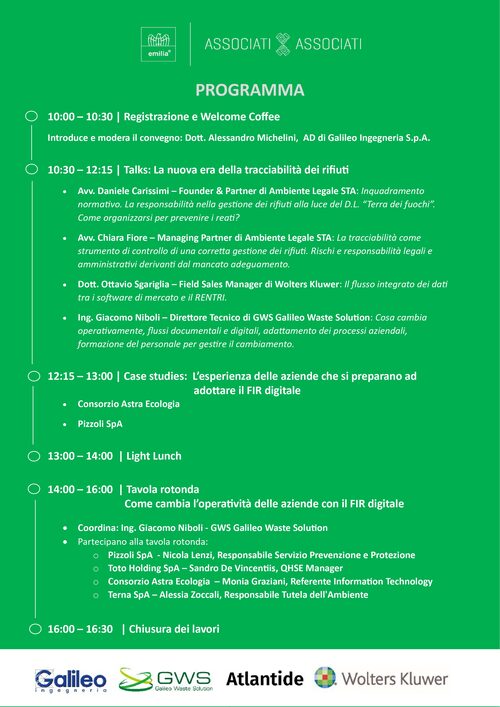 Il convegno intende offrire alle aziende produttrici di rifiuti e agli operatori del settore un’occasione di aggiornamento e confronto sulle novità introdotte dal sistema RENTRI, sulle modalità di compilazione e gestione dei FIR digitali e sulle ricadute per l’operatività aziendale.