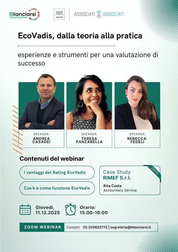 Ottenere un buon punteggio EcoVadis significa guadagnare fiducia, credibilità e nuove opportunità di business. Durante il webinar, Bilanciarsi spiegherà come funziona la valutazione, quali sono i suoi benefici e come prepararsi al meglio, con un racconto concreto da parte di un’impresa che l’ha già affrontata con successo.