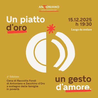 Lunedì 15 dicembre torna l’appuntamento immancabile con Un piatto d’Oro, un gesto d’amore, la Cena di Raccolta Fondi di Antoniano e di Zecchino d’Oro. Quest’anno per la prima volta con la presenza del Piccolo Coro.