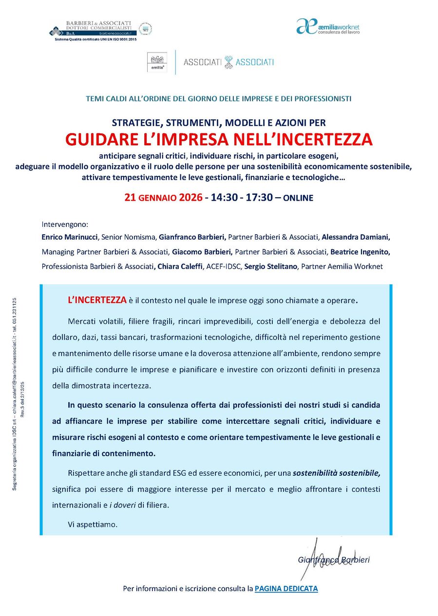 Anticipare segnali critici, individuare rischi, in particolare esogeni, adeguare il modello organizzativo e il ruolo delle persone per una sostenibilità economicamente sostenibile, attivare tempestivamente le leve gestionali, finanziarie e tecnologiche…