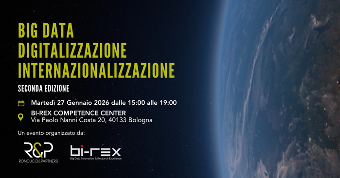Torna a Bologna la seconda edizione di Big Data | Digitalizzazione | Internazionalizzazione, frutto della collaborazione strategica tra Roncucci&Partners e BI-REX Competence Center.