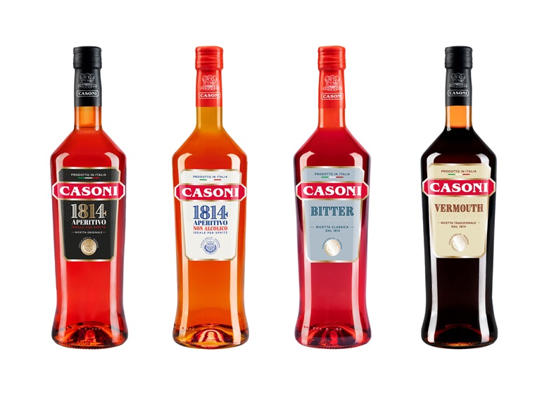 La novità riguarda il rinnovamento dell’immagine: la linea 1814 si presenta infatti con una nuova etichetta per ciascuna referenza, studiata per rendere il brand ancora più riconoscibile e distintivo. Al centro del progetto grafico torna protagonista assoluto il logo Casoni, ora valorizzato in modo più netto ed evidente, a rafforzare l’identità e la storicità della gamma. Una rivisitazione estetica pensata per dialogare in modo ancora più efficace con il mondo del bar e della mixology contemporanea.
