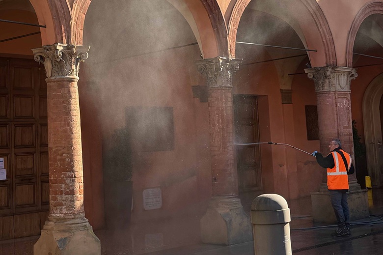 Su richiesta urgente di due privati cittadini, l’attrezzatura è stata impiegata per la pulizia e sanificazione di una porzione di portico a Bologna, ottenendo risultati molto positivi: un intervento naturale, rapido e privo di residui inquinanti.