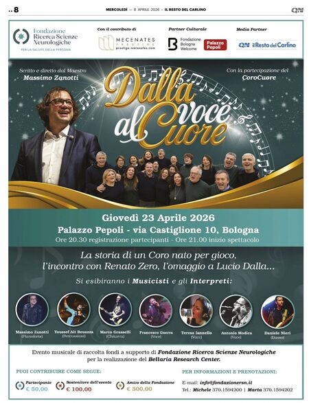 Evento musicale di raccolta fondi a supporto di Fondazione Ricerca Scienze Neurologiche per la realizzazione del Bellaria Research Center.