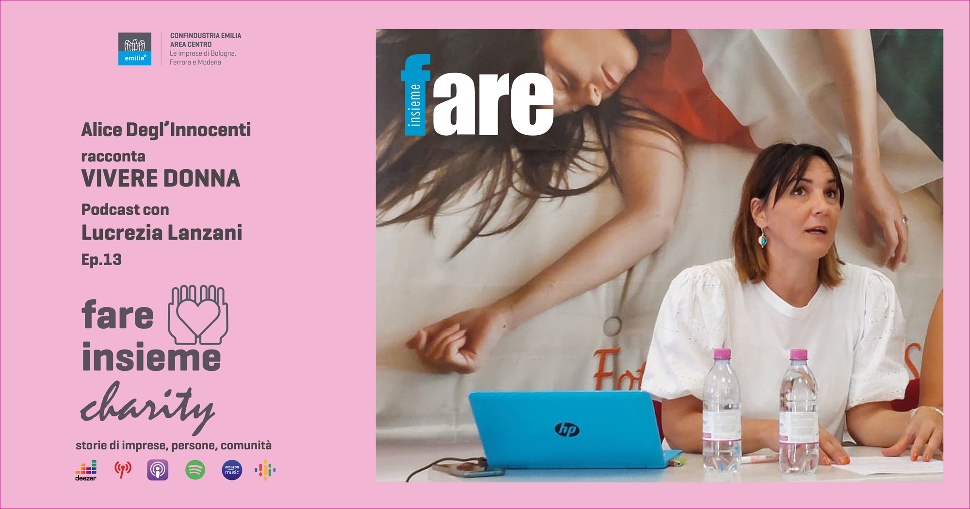 Nel 2004, a Carpi, nasce un piccolo sportello di ascolto, uno spazio sicuro per le donne, che nel corso del tempo si struttura e, nel 2013, diventa Vivere Donna APS che oggi segue circa 200 donne all’anno, entrando anche nelle scuole e nelle imprese per fare cultura e prevenzione. Per FARE INSIEME Charity, Lucrezia Lanzani intervista Alice Degl’Innocenti, vicepresidente di Vivere Donna APS
